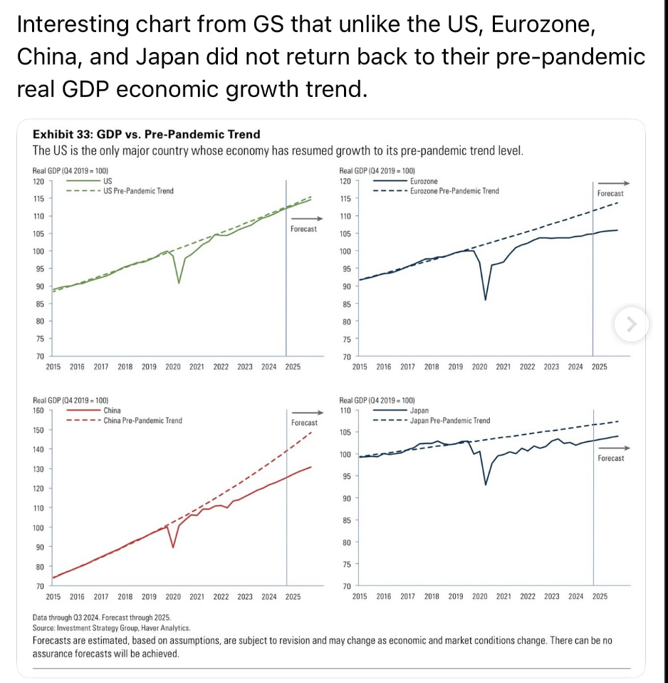 These trend lines are a little arbitrary tbh. The economy doesn’t grow around a constant linear trend. Solow model would predict a slowing.