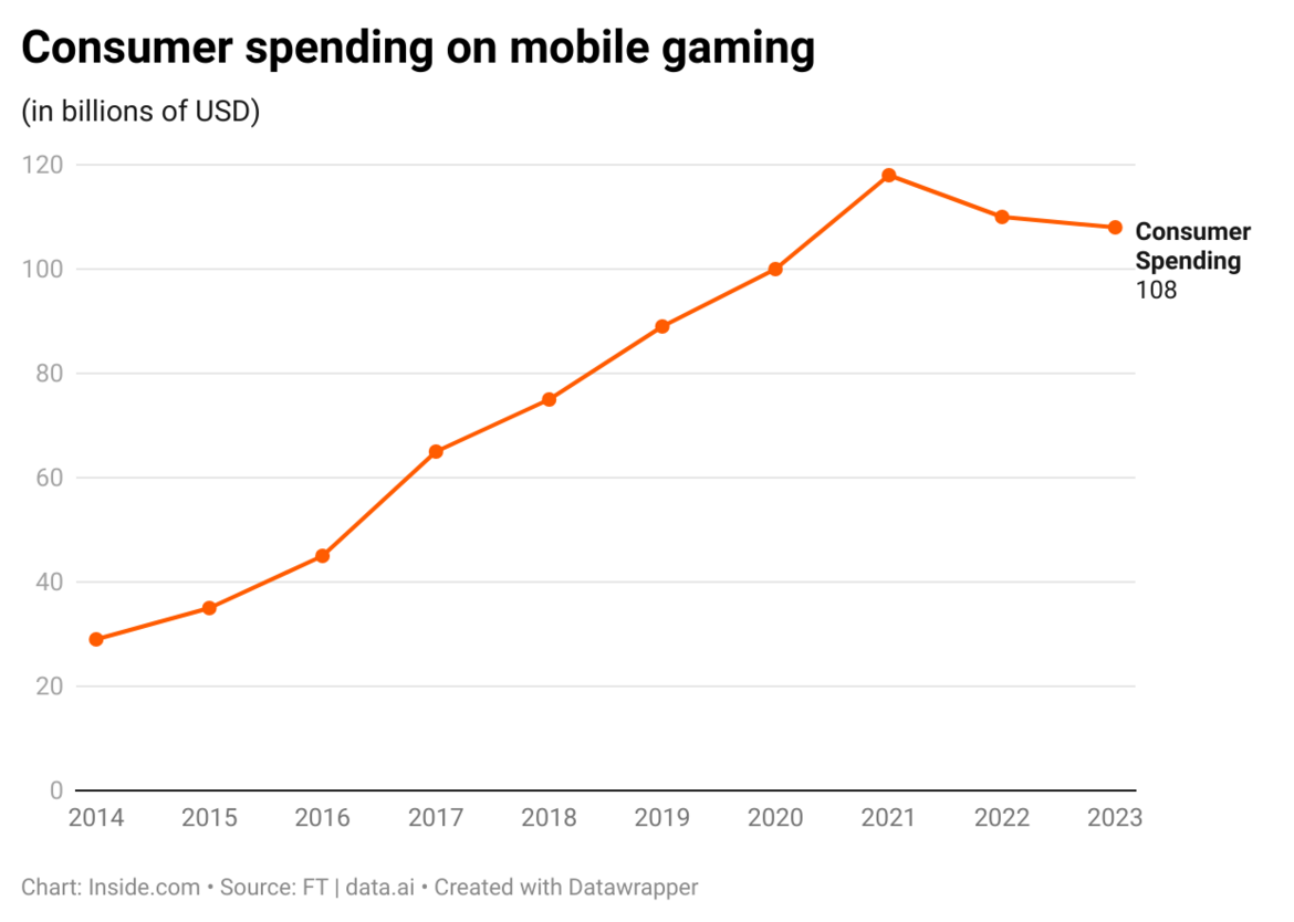 What the numbers say: The $200B video game industry is facing its most significant slowdown in 30 years, with consumer spending on mobile gaming dropping by 2% to $107.3B last year. Sony has reduced its PlayStation 5 sales forecast due to slowing hardware sales, and Microsoft, after acquiring Activision Blizzard for $75B, is considering selling its own games on rival consoles, as the industry's growth rate last year was less than 1%, indicating slower growth compared to other entertainment categories.